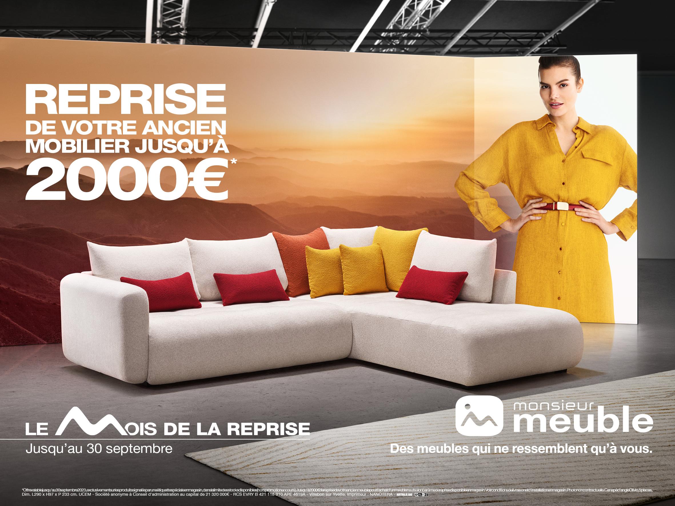 En ce mois de septembre, profitez de la reprise de votre ancien mobilier jusqu'à 2000€ (sur produits signalés en magasin).