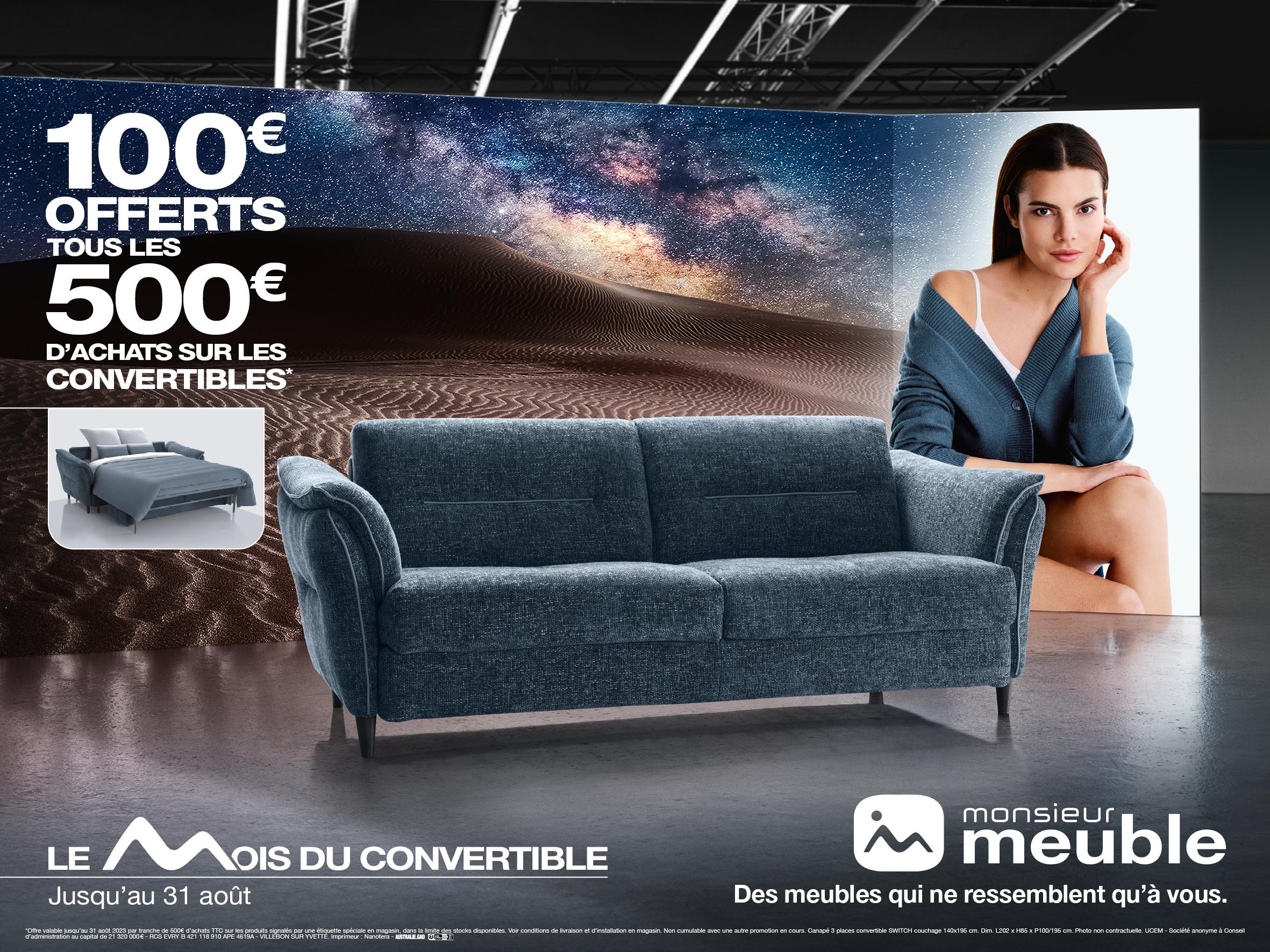 Découvrez ci-dessous une sélection d'articles en promotion dans vos magasins ce mois-ci, bénéficiant de l'offre 100€ offert tous les 500€ d'achats sur les convertibles (réduction déjà appliquée sur prix de vente conseillé).
