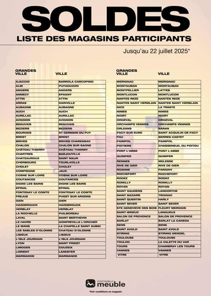 Commencez bien l'été avec Monsieur Meuble ! Profitez des soldes d'été et profitez de toutes les bonnes affaires dans votre Monsieur Meuble !