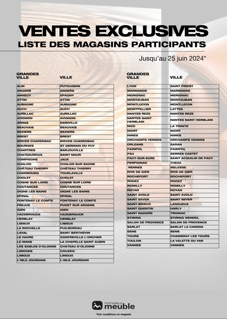 Profitez de nos ventes exclusives et bénéficiez des meilleures sélections pour votre intérieur dans votre magasin Monsieur Meuble.