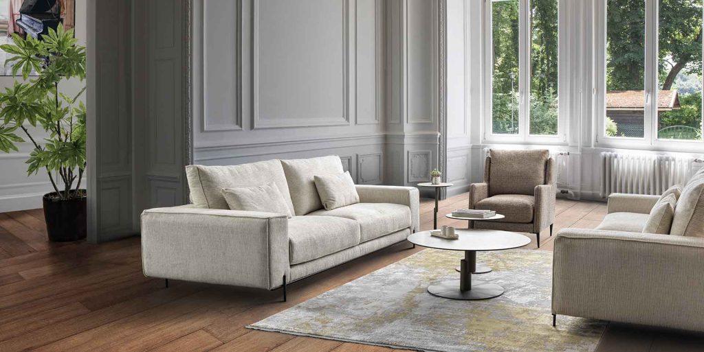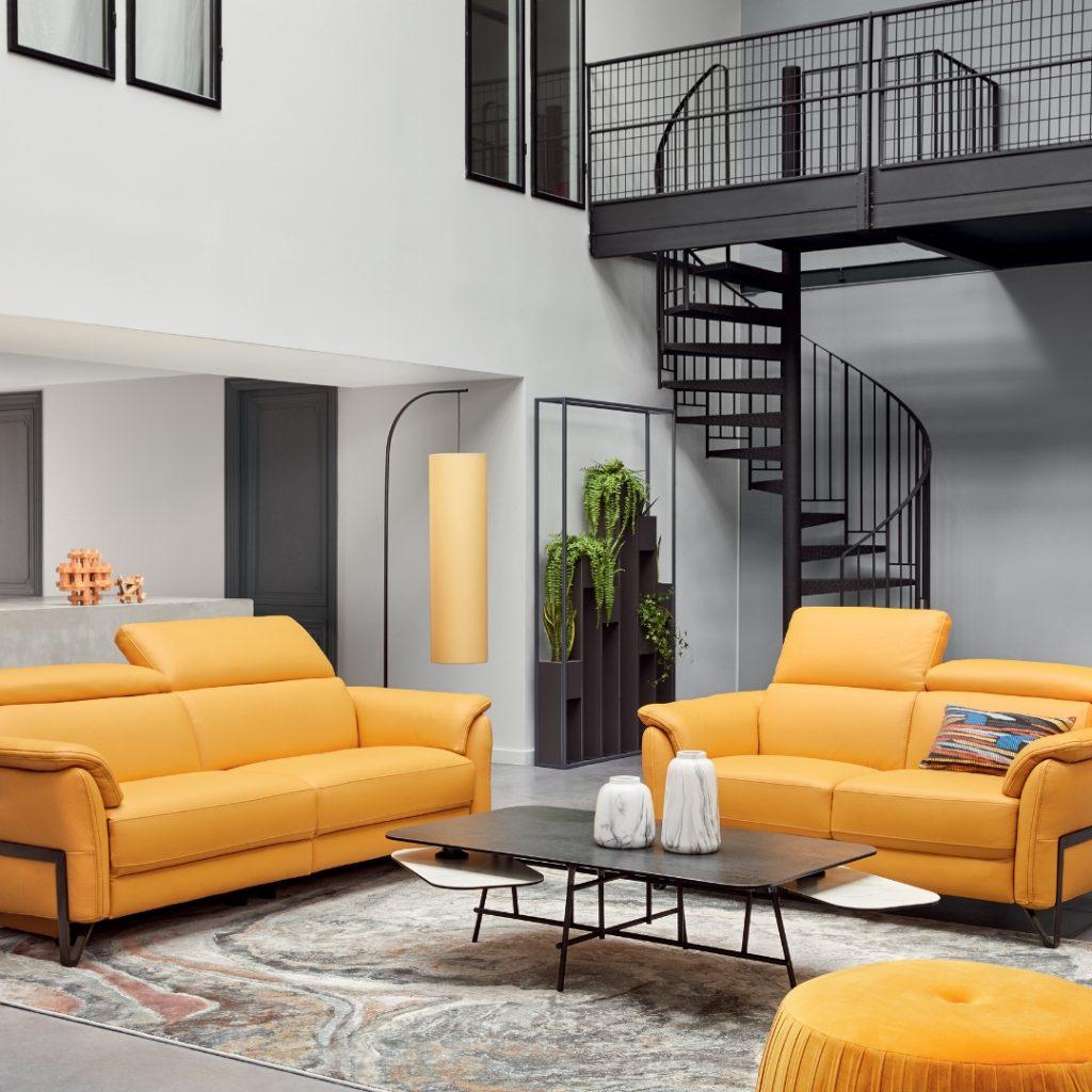Le canapé étant l’élément central du salon, assurez-vous qu’il ait la teinte la plus forte de la pièce et qu’il donne le ton. Le revêtement du canapé joue un rôle dans l’ambiance de la pièce : le tissu et la microfibre sont appréciés pour apporter douceur et convivialité dans le salon tandis que le cuir apporte une touche intemporelle et donne du caractère à la pièce. Attention aux fautes de goût en mélangeant trop de couleurs. Pour faire le bon choix n’hésitez pas à échanger avec un de nos conseillers en magasin de canapés.