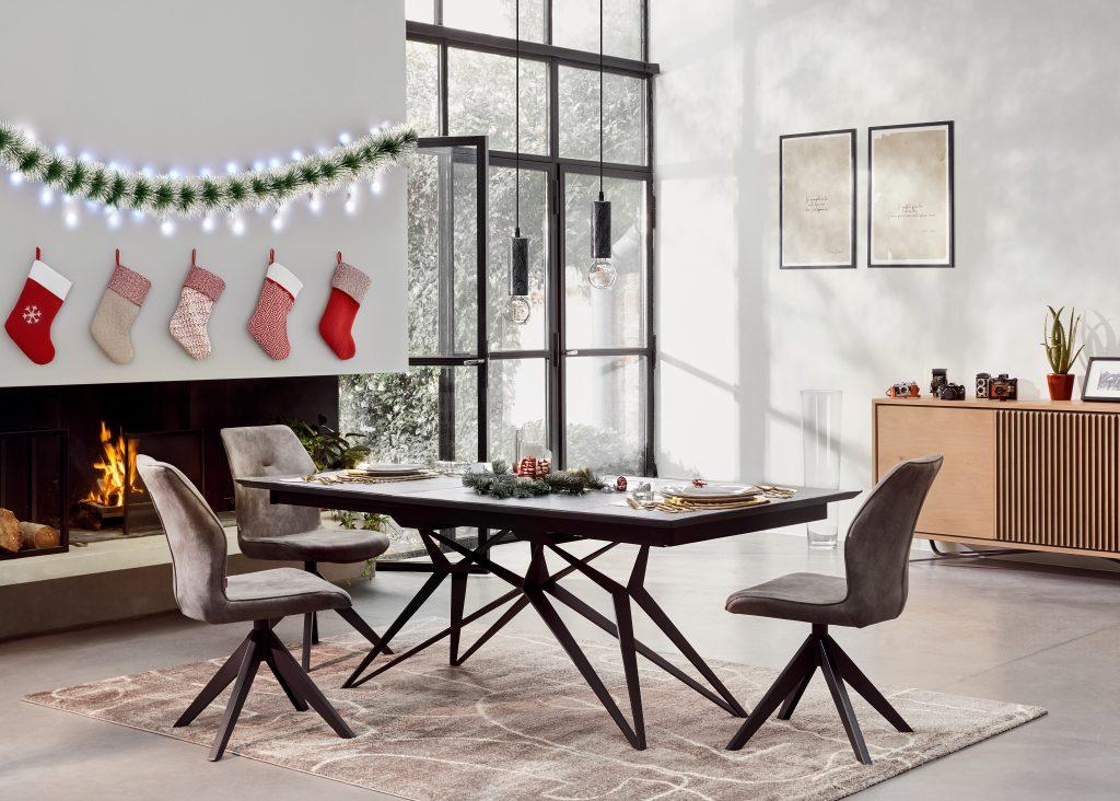 Pour un salon qui respire la convivialité, ajoutez des accessoires textiles comme des coussins aux motifs de Noël et des plaids en fausse fourrure ou en laine sur votre canapé. Privilégiez-les tons rouges, blancs ou dorés pour une ambiance classique, ou choisissez des motifs scandinaves avec des rennes et des flocons pour un style tendance. Et enfin, un tapis moelleux placé au centre du salon renforce l’effet cocooning.